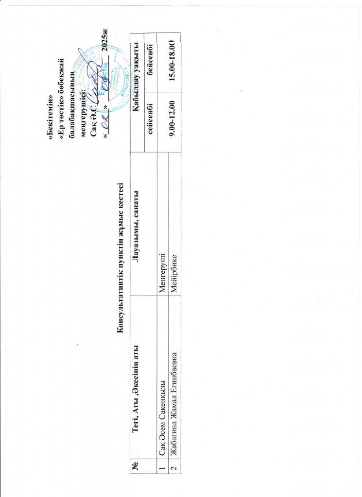 «Алтын сақа-2 » ЖШС жекеменшік «Ертөстік» бөбекжай...